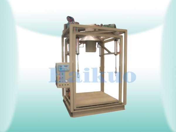 將噸包裝袋套在加料嘴上,將包裝袋四角掛在氣缸上,按動“允加”按鈕,這時壓袋氣缸開始工作并壓住袋口,氣缸將包裝袋四角撐開,控制器將包裝袋重量自動去除,螺旋轉(zhuǎn)動迅速將物料灌入袋中,振動臺開始振動將物料振實,隨袋中空氣一起溢出的粉塵通過吸塵器由除塵器吸走,待加料快到設(shè)定值時,螺旋轉(zhuǎn)速減速慢加,振動停止,到設(shè)定值時,加料停止。誤差<0.3%。這時壓袋氣缸松開袋口,氣缸將包裝袋四角松開,鏟車將包裝袋送出。